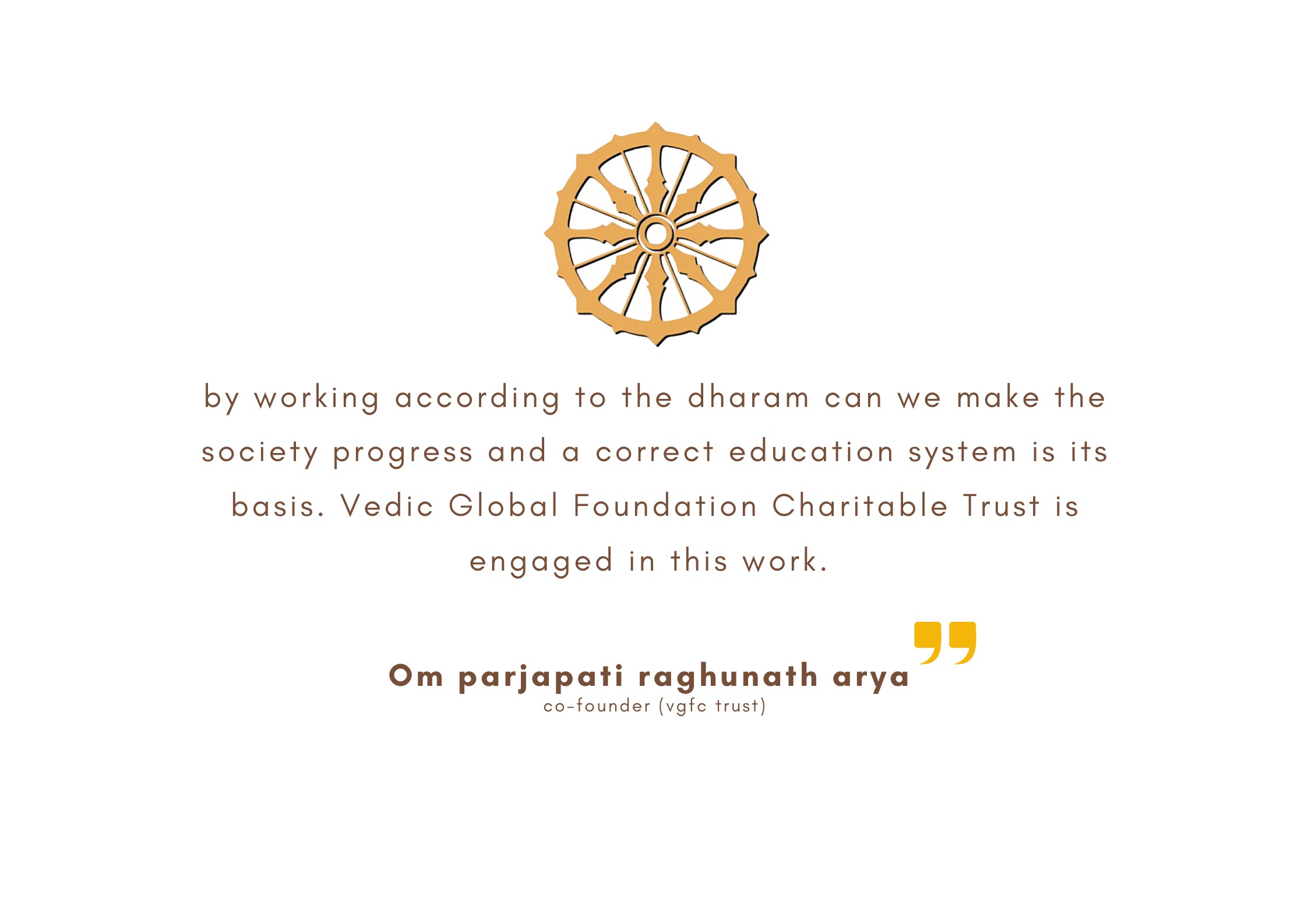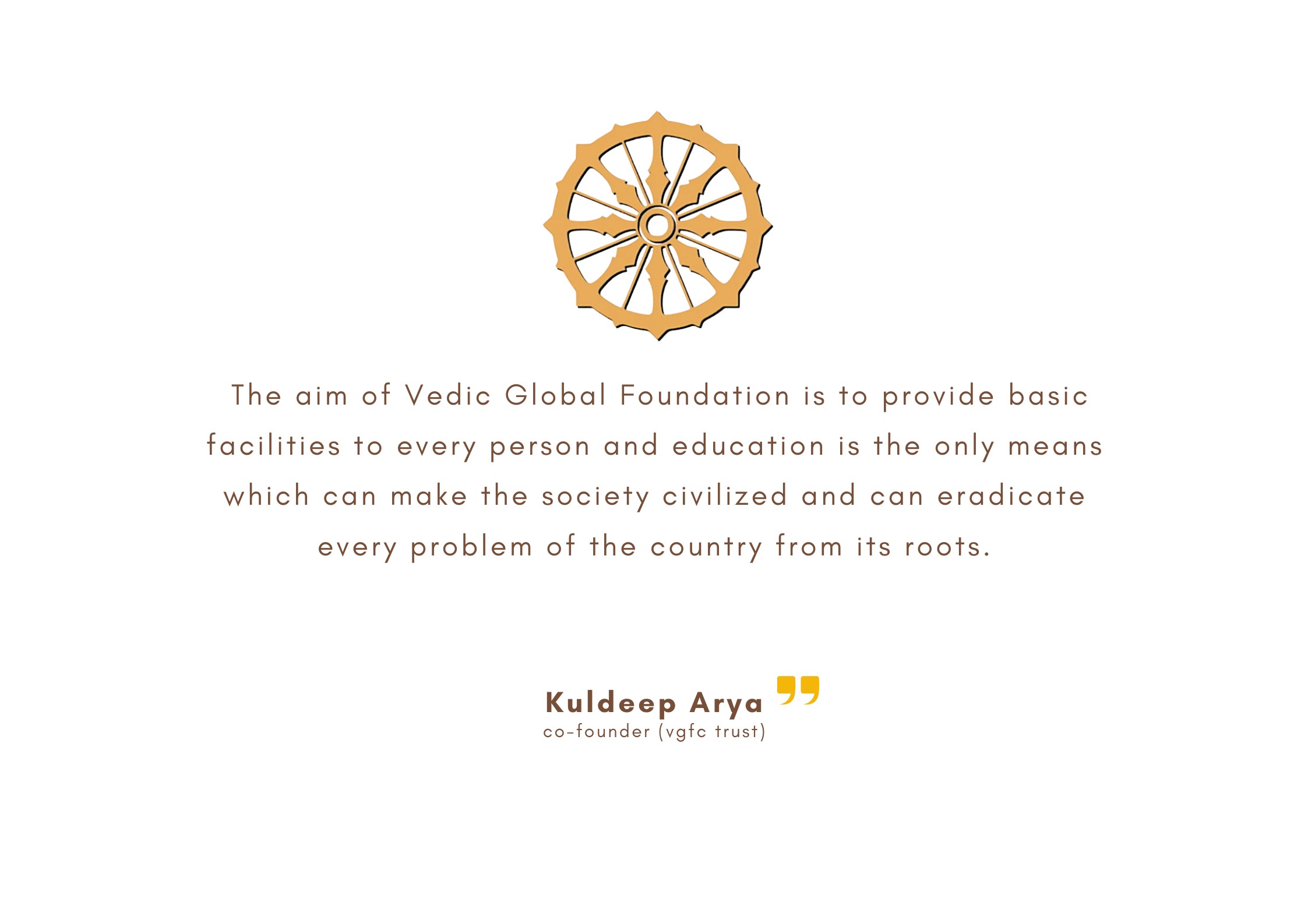 Vedic Global Foundation Charitable Trust whose main objective is to address various societal challenges and establish a comprehensive service system with a special focus on health care.